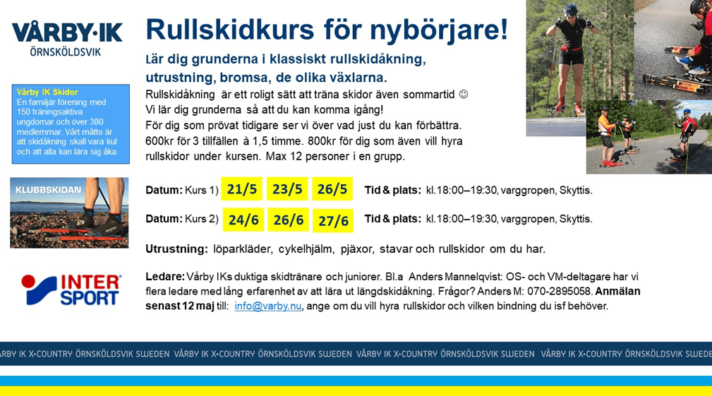 Anmälan: senast 12 maj till: info@varby.nu, ange om du vill hyra rullskidor och vilken bindning du isåfall behöver.